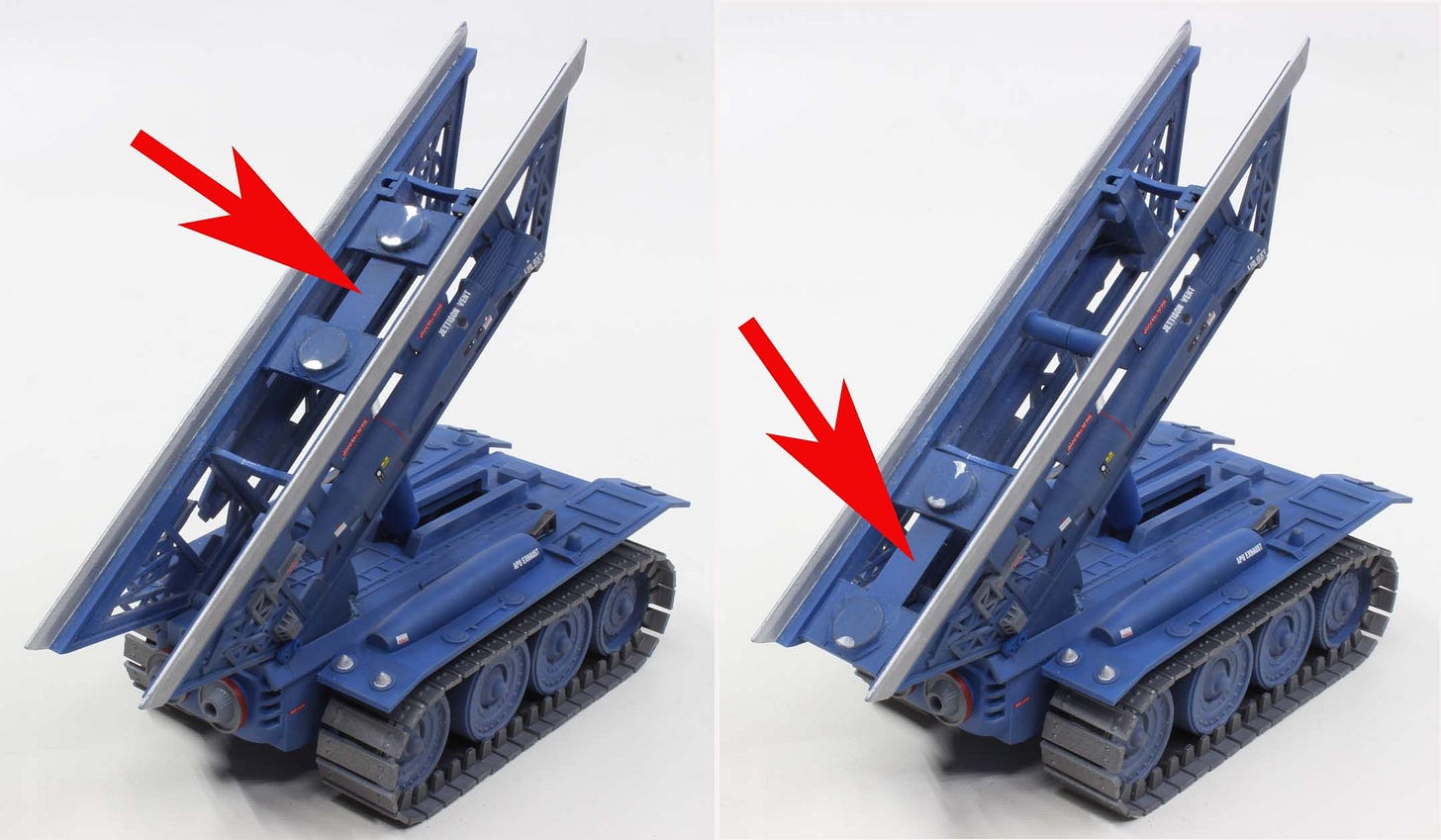 Below is the delivery caterpillar with the angled launch platform. I made a movable “sled” that has magnets on it that attaches to the yellow Mole cylinder that allows the mole to be positioned as desired. The kit had relegated itself to one position only. I decided it’d be more fun to have it be variable.