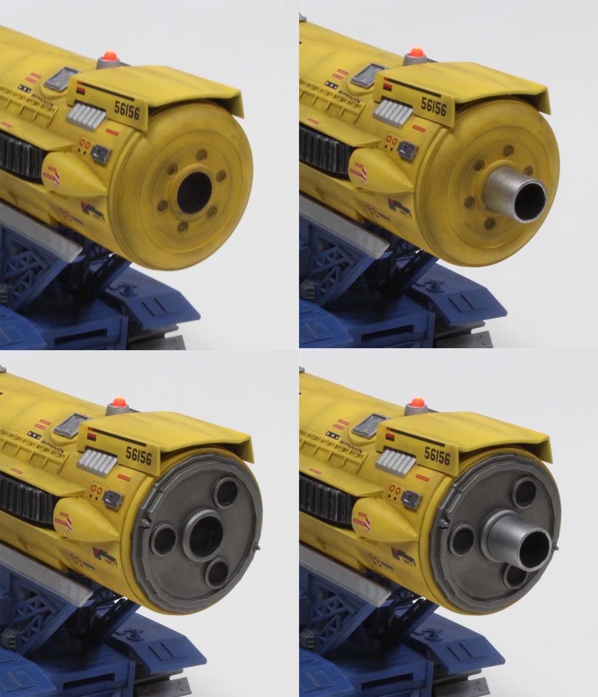 The original studio model(s) had some differences in the rear end of the Mole, and the kit provided a choice of styles that would be permanent. BUT I wanted the choice to be choose-able (is that a real word? Meh… gonna use it anyway since nobody cares about using proper grammar these days) after the fact so I made sure that both versions, including the optional rear rocket motor could be swapped out at will. I used magnets for the rocket motor and I found some extra screws in my stash to allow the second backing to be put in place too. This removable/swappable plate also allows access to the battery pack that runs the flashing light on top.